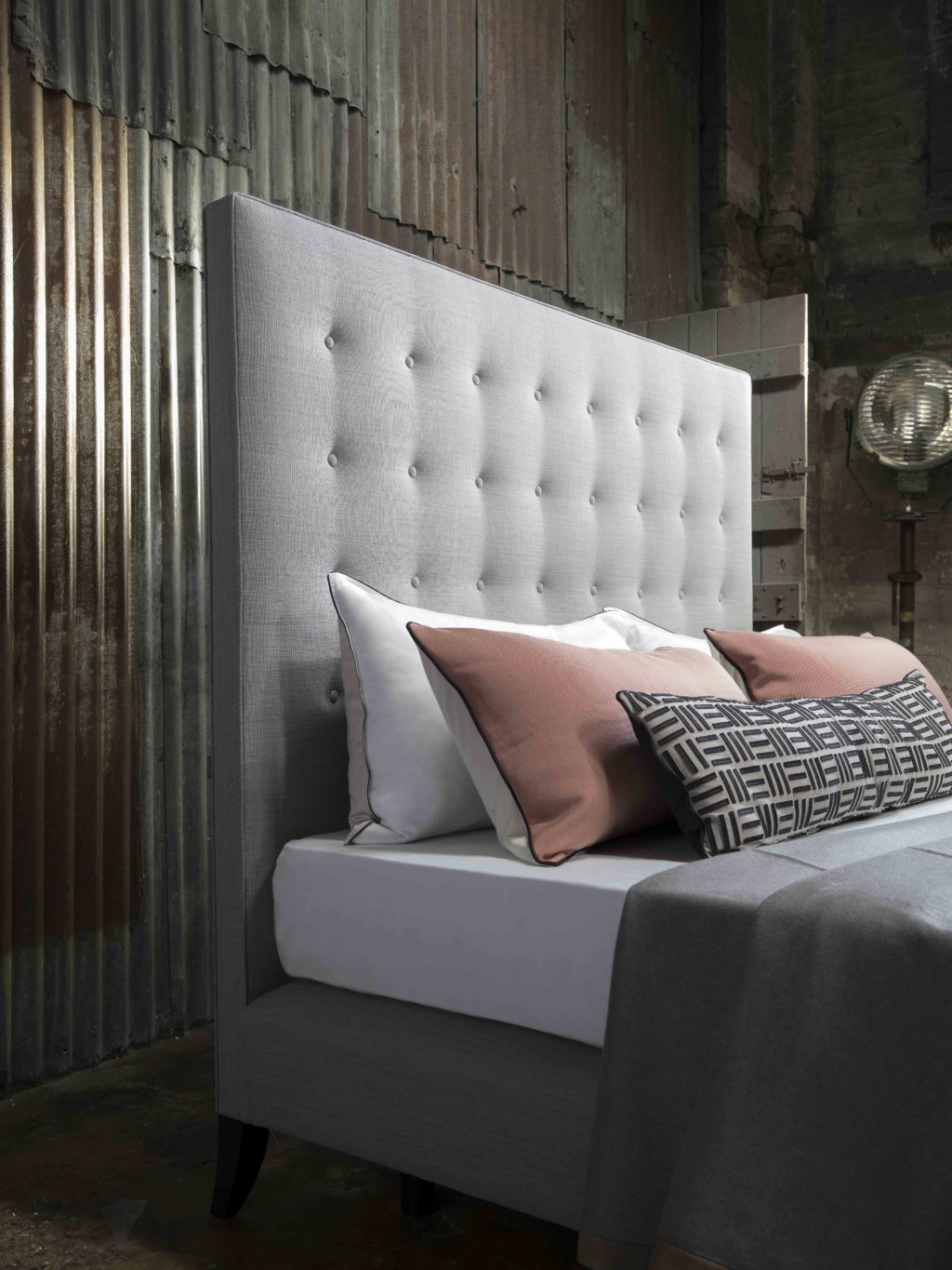 부드러운 물결을 이루는 버튼과 파이핑 처리된 가장자리 마감이 돋보이는 헤드보드입니다.